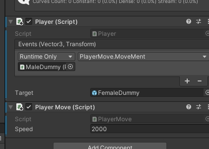 아까 말한 Player객체안에서 Target객체와 Event를 PlayerMove의 MoveMent 함수로 잡아주고 실행합니다