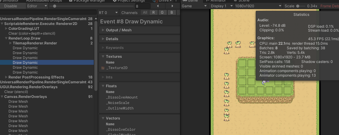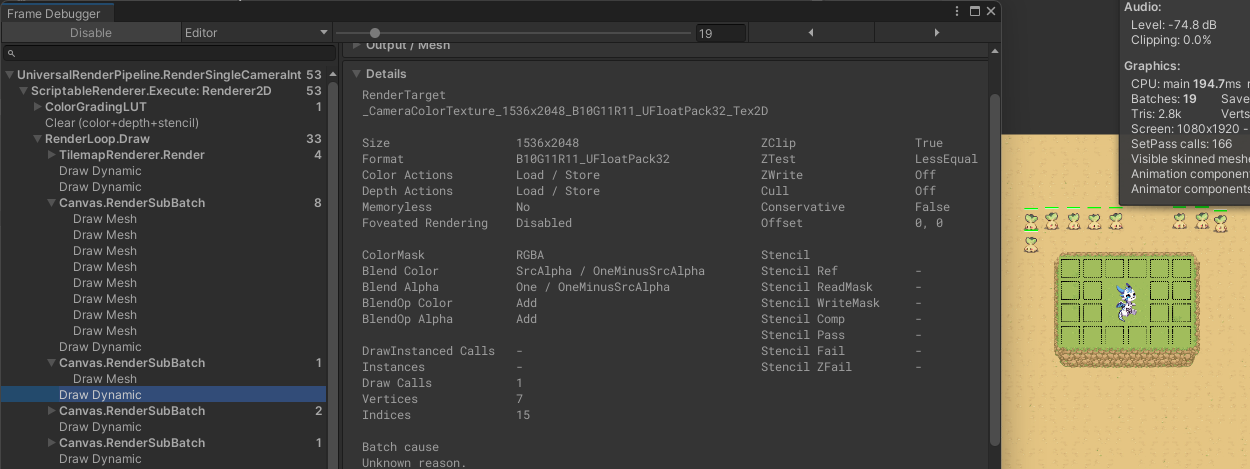 해당 사진을 보면 배치 수가 어떤 건 한 번에 묶여서 드로우 콜 되지만, 어떤건 개별적으로 늘어나는 것을 확인할 수 있었다.