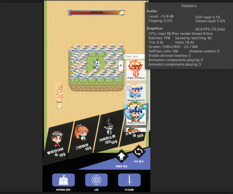 몬스터 포함하면 배치 개수가 300개 이상 늘어났었음.